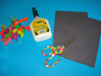 1. Gather your material. You will need several popped water balloons (variety of colors), two sheets of black construction paper, white glue, and scissors.