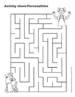 (Open dominoes-Personalities) Print, glue the pages on heavy cardboard, and laminate. Cut the cards. This game is for 2 to 4 players. Each child picks 5 cards. Arrange the remaining cards in a stack on the table. Place one card. The first player tries to match a card to one of the illustrations shown on the initial card. The second player does the same and so on. If a player does not have a matching card, he/she must pick an additional card from the stack. If this card cannot be played either, his/her turn is over.
