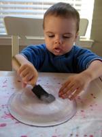 2. Have children paint the paper plate, and let dry. If you use a sponge paint brush the paint will go on lightly and dry fast.