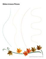 Give each child four or five brown pipe cleaners. Help them twist the bottom of the pipe cleaners together to represent a tree trunk. Help them separate the upper extremity of the pipe cleaners to represent branches. Have children glue their tree on a piece of construction paper. Provide autumn-colored stamps pads and leaf-shaped stampers. Invite children to stamp leaves around their tree’s branches.