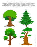 (Open game-Tree association) Print and laminate the game. Using Velcro, children associate the cards to the correct tree.