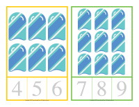 (Open counting cards-At the pool) Print and laminate. Prepare a series of wooden clothespins on which you have written or painted numbers 1 to 9. Children must count the items on each card and place the corresponding clothespin on the correct number.