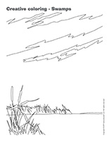 (Open creative coloring-Swamps) Print for each child. Have children draw the missing elements.