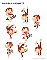 (Open educ-pairs-Monkeys) Print. Children must draw a line between identical monkeys or, if you printed the document in black and white, they can color identical monkeys using the same color. For durable, eco-friendly use, laminate for use with dry-erase markers.