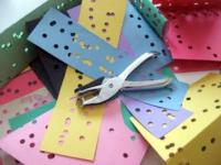 2. Start by punching out tons of holes, keeping all of them. You can do this over a week, allowing children to work out their little hands using the hole punch. You may also have them choose the color of the paper and you can punch the holes if they are unable to do it. You need a lot!