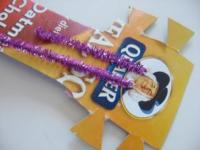 10. Thread your pipe cleaners through both and bend them towards the back. Tape them down.
