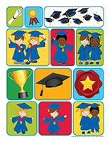 (Open stickers-Graduation) Print the illustrations on adhesive paper and use them to create a collection of unique stickers. Use them to reward children throughout the theme.