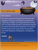 Wow, what a great decorating job! Our classroom looks magnificent! Today, you must prepare two mysterious recipes taken straight out of my grandmother's sorcery book. Your early childhood educator will read the steps for you and she will provide all the ingredients. You can taste the first recipe and the second recipe can be used for hours of fun! Enjoy your cooking lesson... and keep some for me!