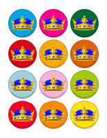 (Open stickers-Royalty) Print the illustrations on adhesive paper. Cut out the items and use the stickers to reward children. Set a chair in your daycare and drape red fabric over it to represent a throne. Set a long red rug in front of the chair. Hang tulle from the ceiling above the chair and add large vases filled with fresh or fabric flowers on either side of it. If you wish, you may also deposit large bowls or baskets filled with plastic fruit nearby.